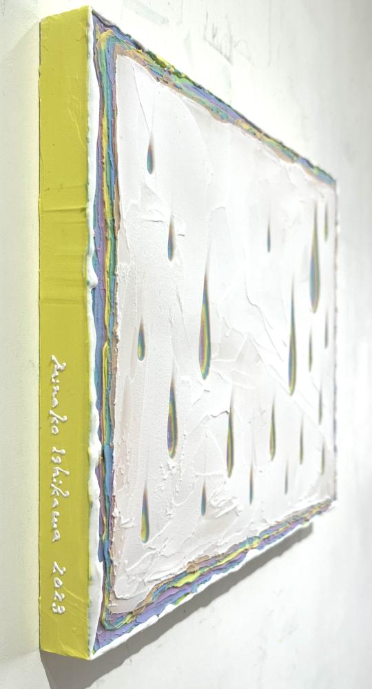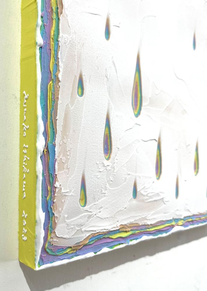 The true beauty of Minako Ishikawa's work is that the lines are drawn with a single thin acrylic stroke, which is arranged among thousands while subtly changing the color scheme.