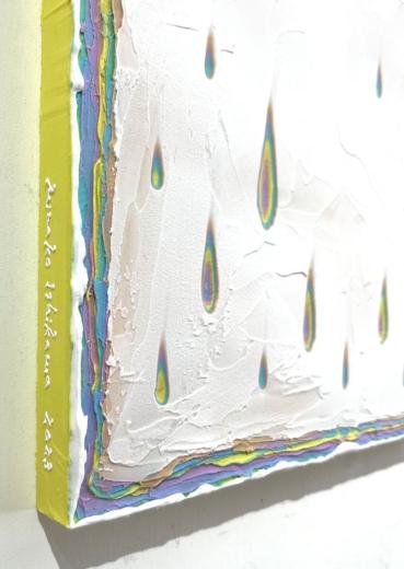 If you think that she paints her work with the colors of the rainbow on a transparent acrylic board, she will change it freely, like drawing with blue on a white canvas, and will attract viewers with her gradations.