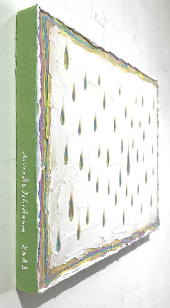 The true beauty of Minako Ishikawa's work is that the lines are drawn with a single thin acrylic stroke, which is arranged among thousands while subtly changing the color scheme.