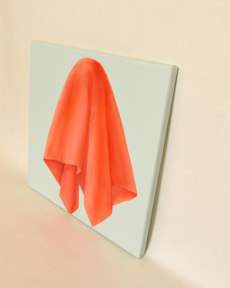 Please look at the work while imagining what is hidden in the red cloth.