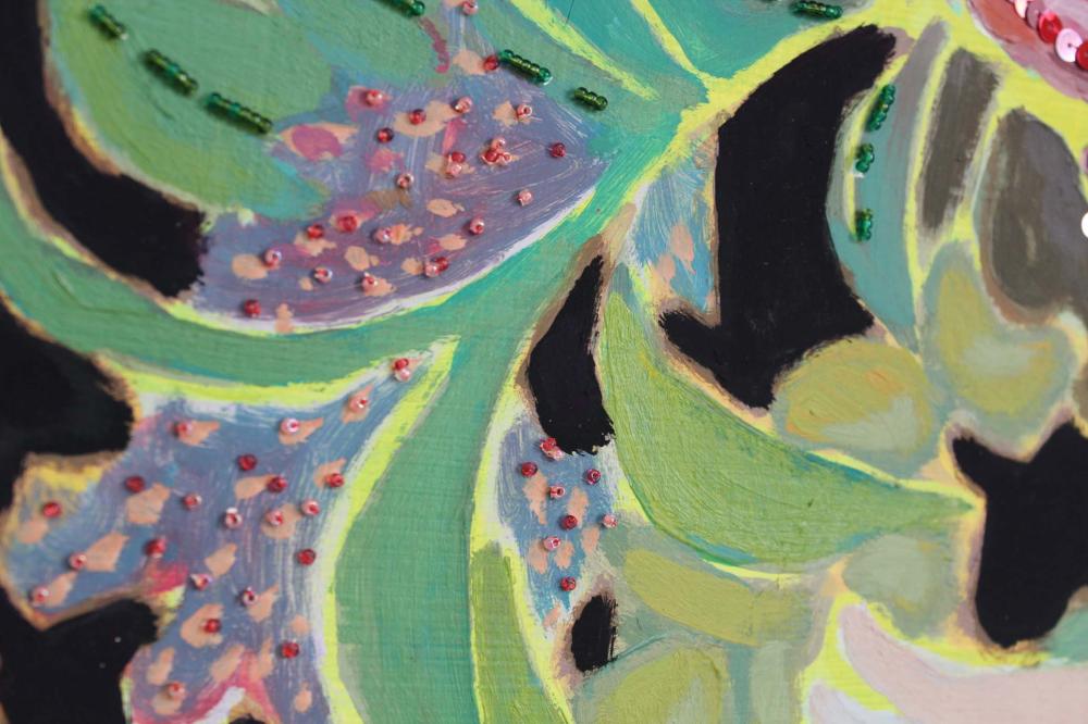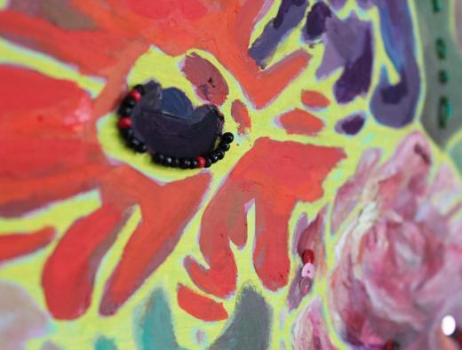 Naoko Fukui aoko Fukui is one of highly recommended artists introduced by Gallery TAGBOAT.She is distinguished for brightly colored painting and accessories decorated with shiny materials such as beads and spangles.One of her installations was awarded by Taro Okamoto Award of Contemporary Art, which she decorates the space and makes it into a magical room.With decorations and paintings, and the combination of plane with space, she presented viewers with a more familiar way to enjoy art.Her colorful outlines which heighten the decorations and the plane surface are recognized as her painting style.On the other hand, we could still find the hidden dignified strength in her painting, without failing to capture any twinkling of the moment.She puts all of her personal life experiences and memories to her artistic creation.Memories from the nature, memories from her grand mother who has a talent for stitching, memories from traveling and bright memories of touching moments.Not only paints on canvas, she has been using every conceivable materials to spell her memories on, such as cloth, beads, wood, pottery and so forth.She endeavors to conceal her memories in a singular space.