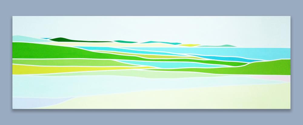 In addition, at the same time as creating three-dimensional paintings with visually unbroken views, her paintings have a horizon that spreads beyond the canvas.