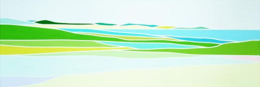 I would like to depict the green landscapes that embrace us broadly and move us emotionally in the canvas, overlapping gentle curves.
