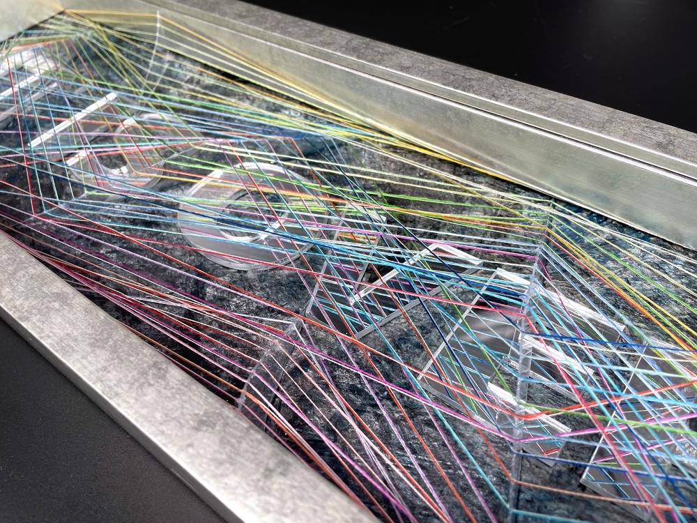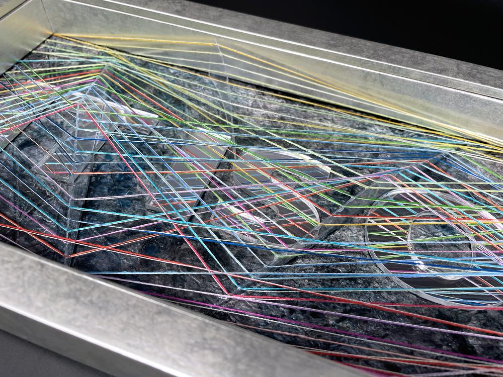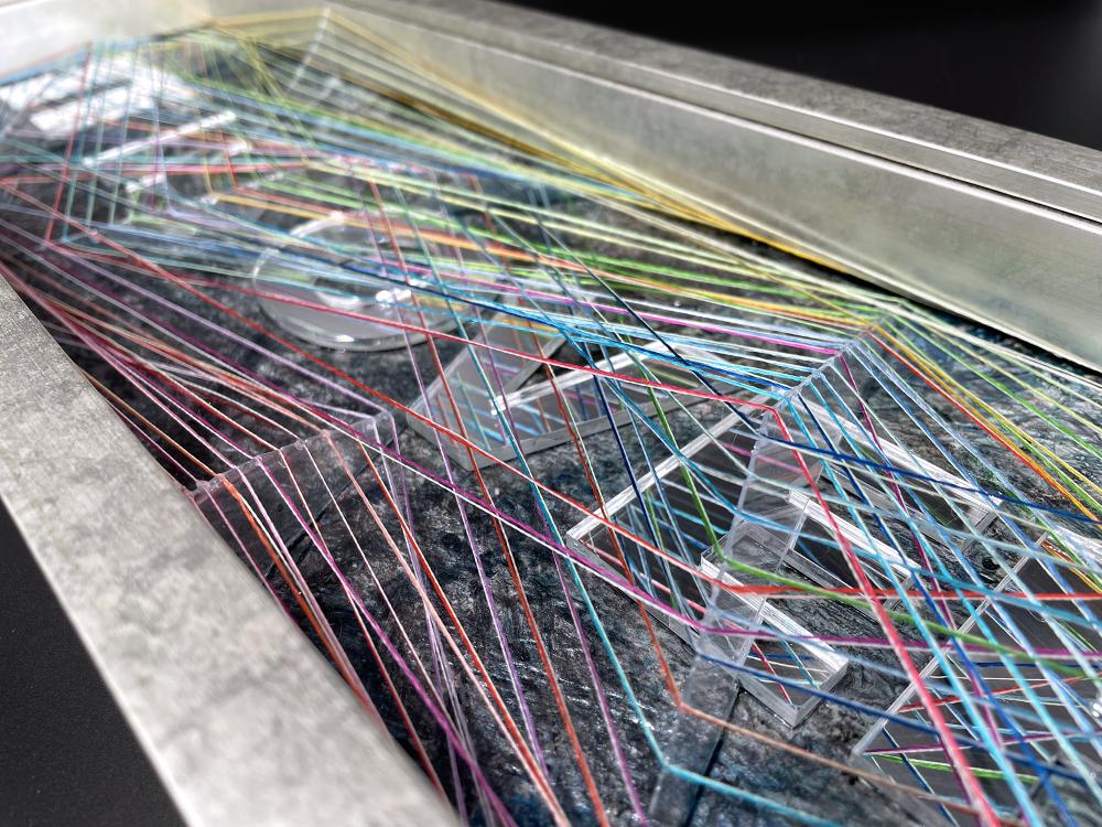 作品のタイトル「It is Over」の「It」とはコロナ禍を指しています。コロナ禍によって引き起こされた不安は、人々の心に深い傷を残しましたが、今世界は新しく生まれ変わろうとしています。この作品では、新しい世界に向かって突き進む人々の意思と希望を、1本1本の糸で表現しています。