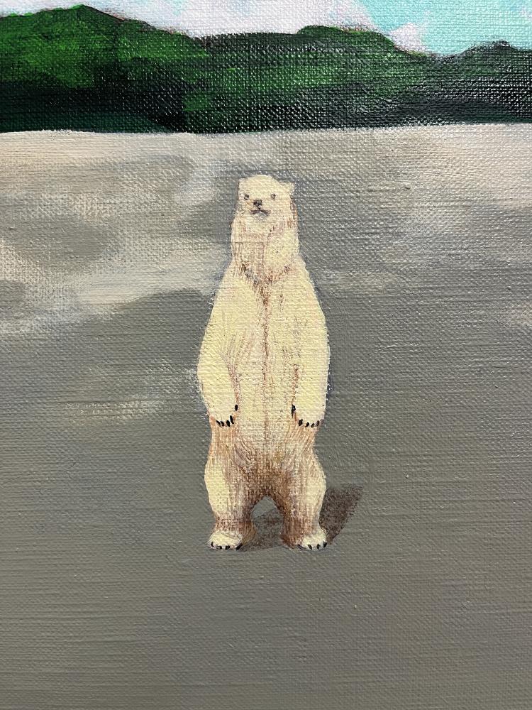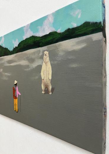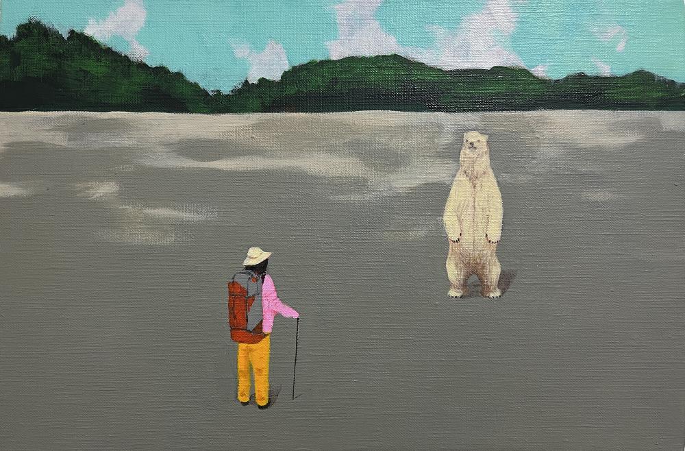 実体験の記憶や写真、メディアを通した様々なイメージを断片として組み直し、独特の世界を作り上げる山中。その画面に映し出される景色はタイトルも含めて何も意味はありません。人の持つ先入観をあざ笑うかのように小さな熊や子供たちは意味深なポーズで登場します。それは先入観を捨て大局的な見地に立つことの大切さを教えてくれているのかもしれません。