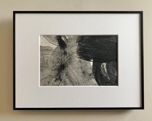 本作は、心(ハート)を描く彼女の「INFINITY」シリーズからの派生で生まれた一作。ハートを延々と描き続けるなかで筆から官能的な動態が生まれ、その一瞬を封印するスリリングな面白さがあります。大きな和紙に描いたものをトリミングし裏打ちして制作しています。