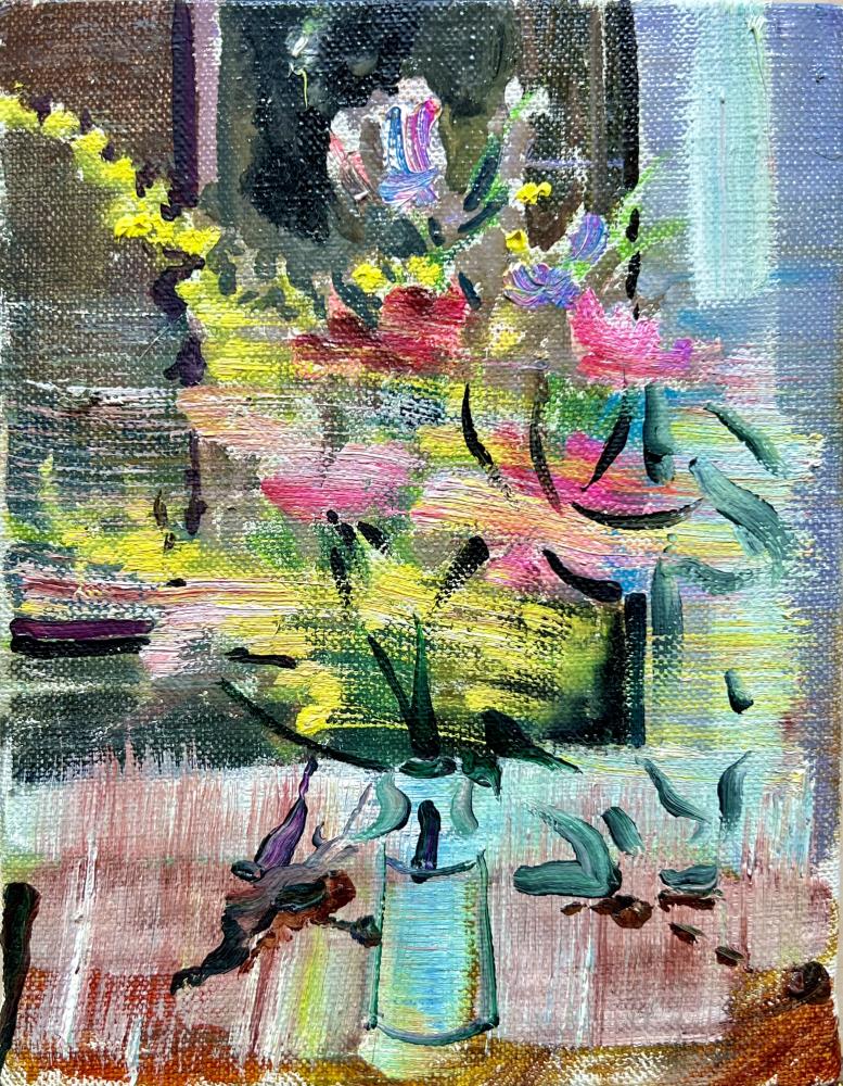 モチーフ選びは、輪郭を借りるだけで特別に何かを表そうとか意味を持たせることはしたくないと思ったのだ。なぜそうなったかというと、自分自身がその様な描き方を望まなかったからだ。直球で何かものに向かい、直接的に風景やら日常の一場面を描く方がそれこそ自分らしいと思った。しかし、幼少期にポールセザンヌの絵を見て「特別だ」と強く感じた。ただの風景画や人物を描く画家にはなりたくないと思った。今でも現代の絵を描こうと画家の探求は続いている。”