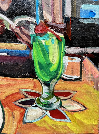 モチーフ選びは、輪郭を借りるだけで特別に何かを表そうとか意味を持たせることはしたくないと思ったのだ。なぜそうなったかというと、自分自身がその様な描き方を望まなかったからだ。直球で何かものに向かい、直接的に風景やら日常の一場面を描く方がそれこそ自分らしいと思った。しかし、幼少期にポールセザンヌの絵を見て「特別だ」と強く感じた。ただの風景画や人物を描く画家にはなりたくないと思った。今でも現代の絵を描こうと画家の探求は続いている。”