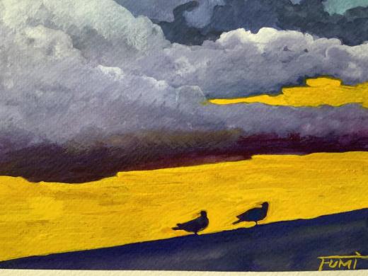 Fumiko was born in Japan but left her home country at the age of fifteen to pursue her interest in art. While studying in the UK, she backpacked around Europe where she learned about many masterpieces of art. This experience enabled her to experiment with a vast variety of painting techniques adapted from great artists, both past and present. After her graduation from the Camberwell College of Arts, Fumiko became an apprentice to Japanese-paper artisans for two years in Kyoto. While there, she developed her unique use of colours through the paper-dyeing practice. Since then, colour has been the most important element in her works. Through her international life, she has encountered a great diversity of cultures and people, and came to realise the complex emotions that lurk beneath them. This realisation quickly became the major theme of her works. In her imaginary landscapes and figures, she aims to depict both the beauty and ugliness of the contemporary world. Her cross-cultural background has been giving her artworks a distinctive style and she has been exhibiting her works internationally.