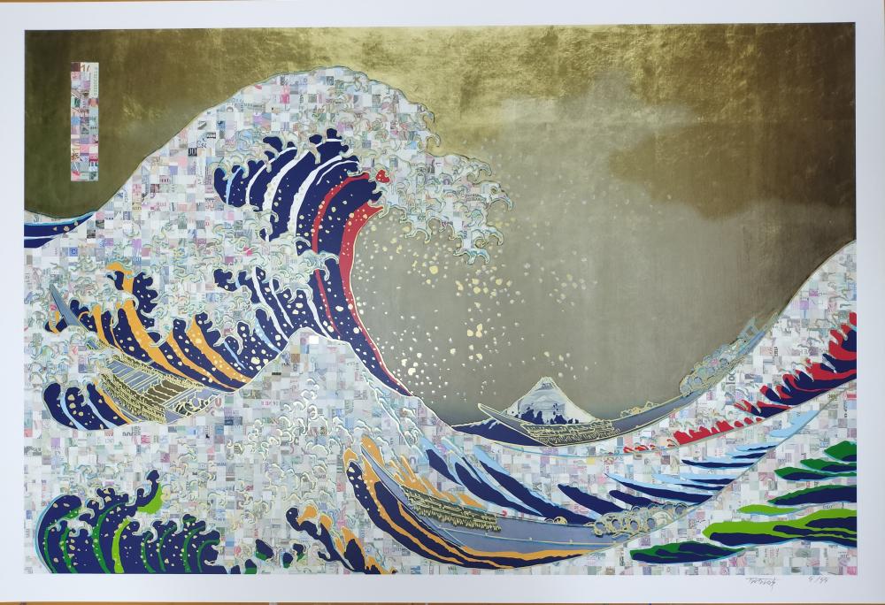 He expresses the process of creation of the world mainly by using banknotes, currency system, Ukiyoe and classical art of the world as materials.