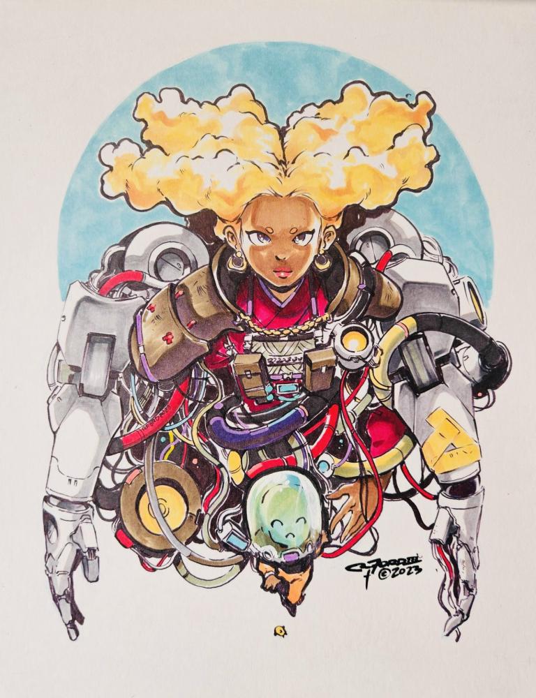 Alcohol markers, sumi ink
