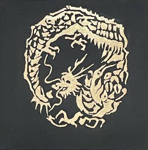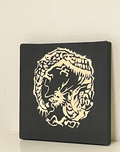 キャンバスにアクリルと箔で龍の絵を描きました。