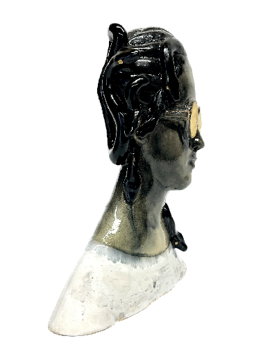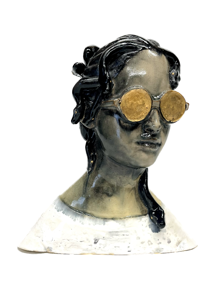 陶やテラコッタを主な素材として用い、実体と表層、意識と無意識、ペルソナとアニマなど相対する2つの価値観を行き来するような造形を目指し制作しています。人として生きていく上で抱えざるを得ない矛盾やズレへと向かう表現を人体という古典的、かつ普遍的なモチーフを用いて探求しています。空間や質量の中に歪みやズレを取り込みながら制作することで彫刻という実存感が強いメディアに曖昧さや割り切れなさを含ませようとしています。鑑賞者が正面を探し、不安定に立ち上がる立体の周りを歩き回ることで、「存在する」ことと「見る」という行為の間に横たわる断絶について思索を巡らせるような表現を試みています。