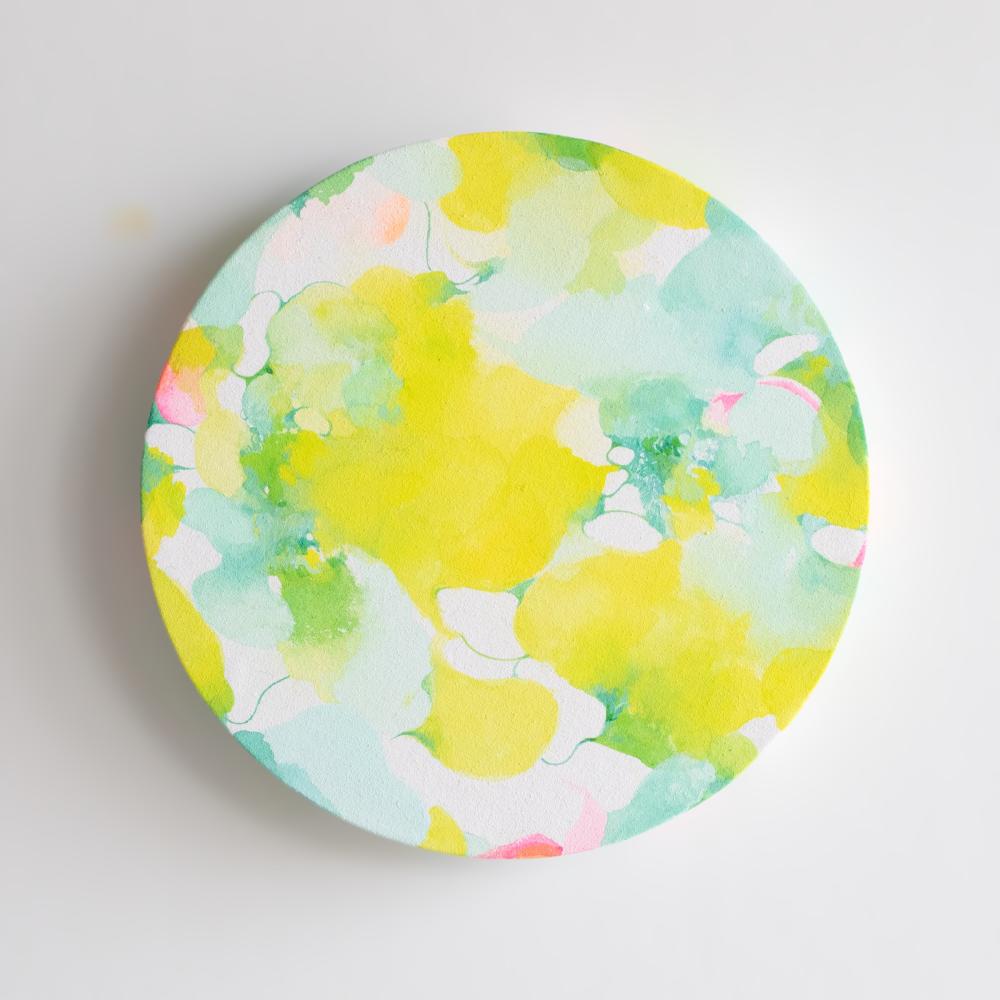 木製パネルに布貼り ガッシュ・水彩絵の具・胡粉ジェッソ
