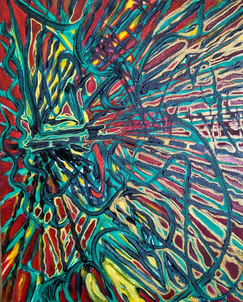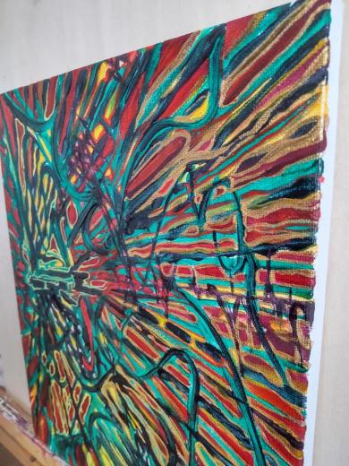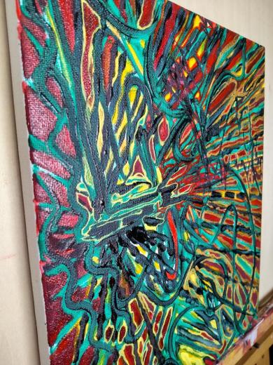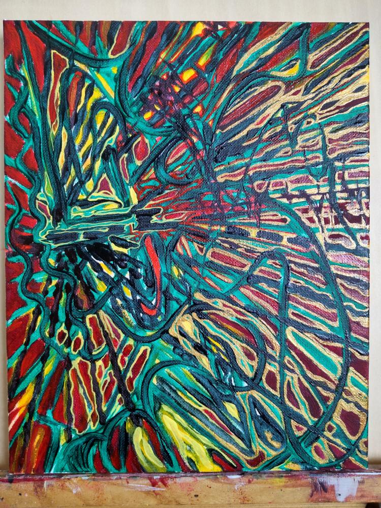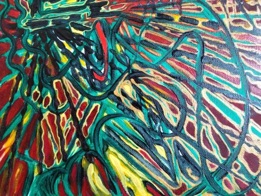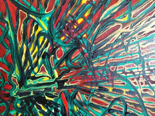 子供の頃に毎日のように聴いていた音に見た流れをテーマとしてして描いた作品です。 現在の自分の作風からすると、レアな作品だと思います。