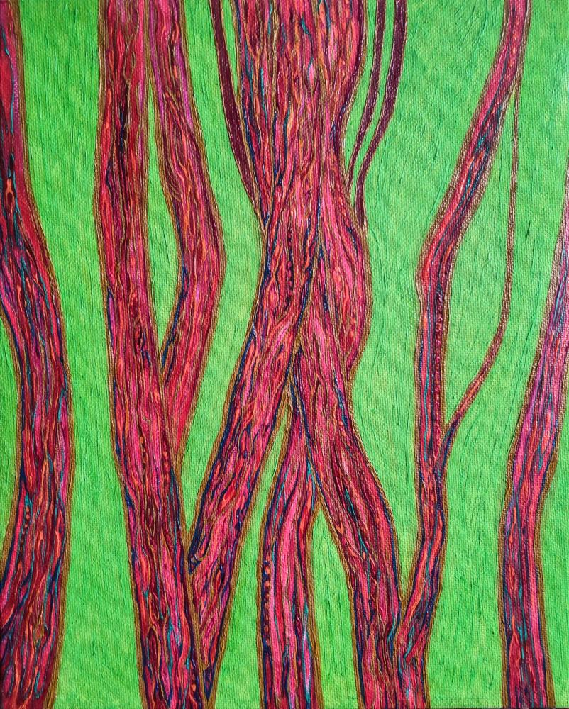 Using unidentifiable synesthesia as a radar, he primarily depicts the flow found in mountain and waterside landscapes.