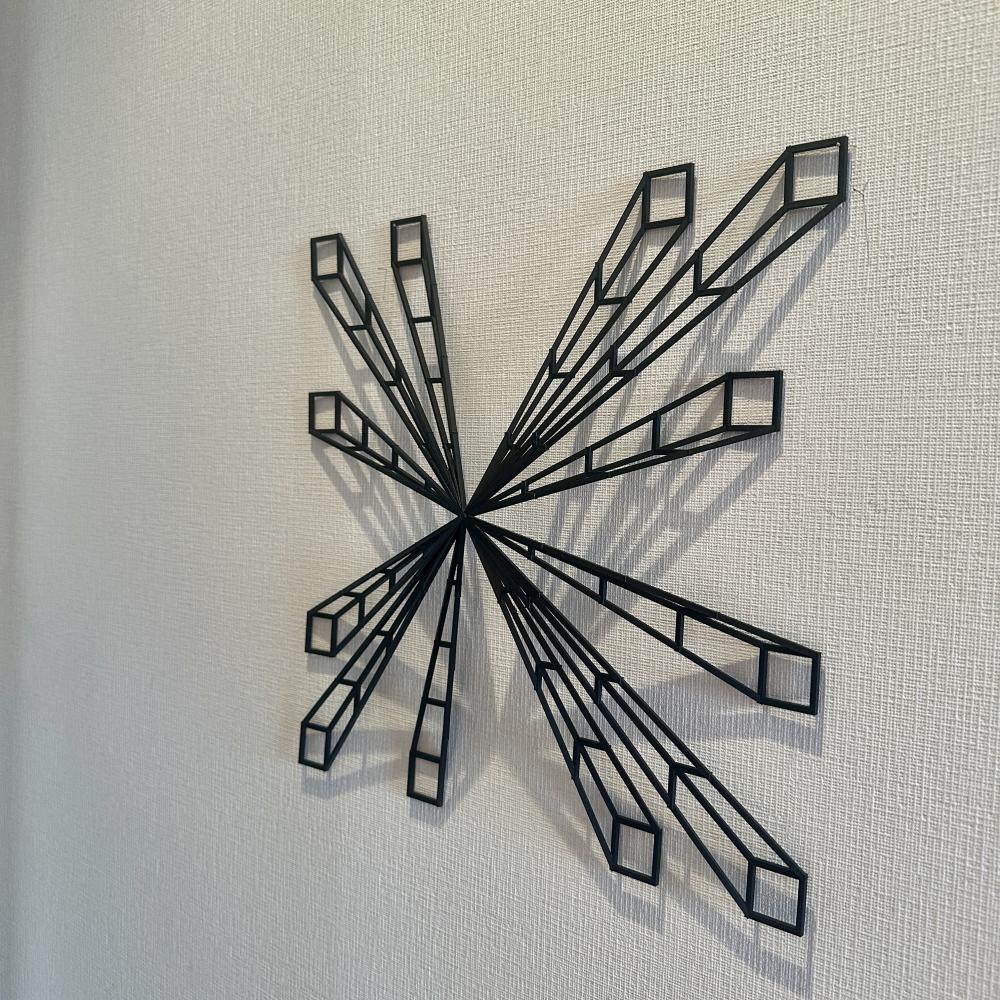 建築を学んだ経験を活かし、オオタは作品を空間的なシステムとして捉える。3DCAD上で作品と展示空間を一体的に設計し、構造解析によって現実的な成立性を検証した上で、産業用3Dプリンターによって具現化する。その後、金属や石墨といった素材を手作業で磨き上げ、デジタルと物質のあわいに新たな現実を構築する。