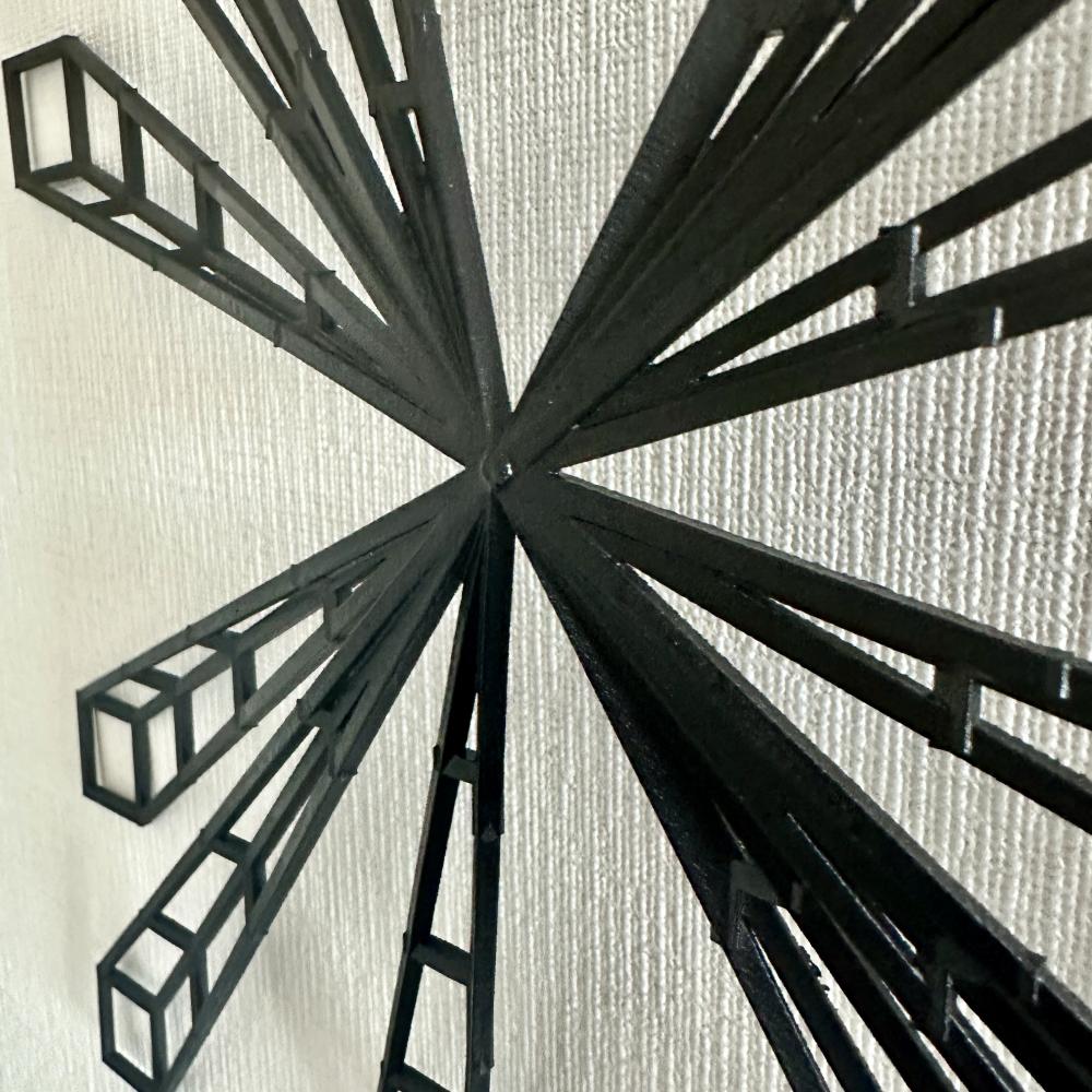 錯視、遠近法、モアレなどの視覚的構造を用いながら、見ることの仕組みそのものを攪乱し、存在と非存在、現実と虚構、構築と想像のあいだに潜む曖昧な境界を浮かび上がらせる。彼の作品は、私たちが世界を理解するために拠って立つ「構造」を可視化し、それを問い直す装置として機能する。