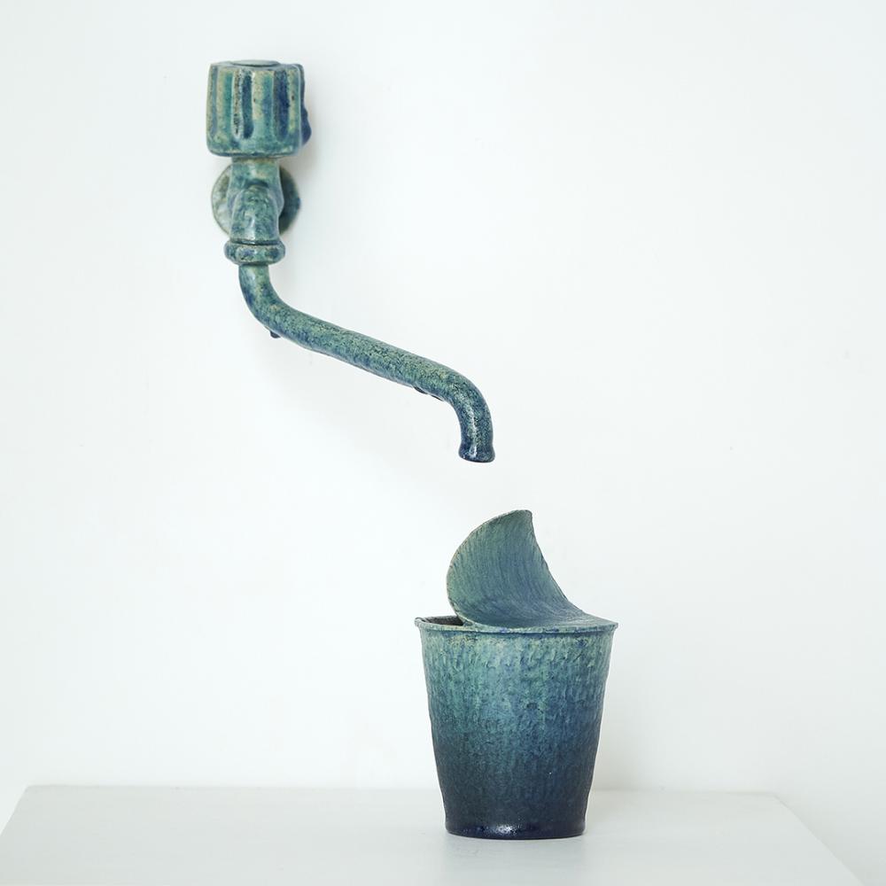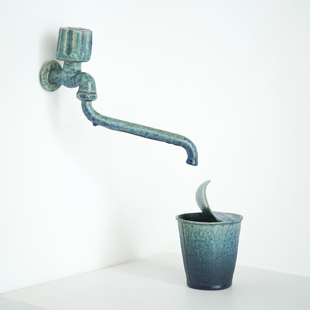 The faucet represents the outpouring of affection, while the container symbolizes the human spirit.