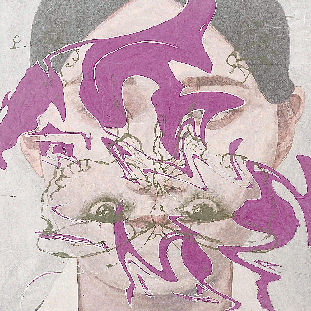 証明写真をもとに描いた顔の上に、元の顔を歪ませた図像とドローイングを重ねて描いている。歪んだ図像は人の顔が見られる時に持つ多面性を表している。 鑑賞者は図像の隙間からしか顔を見る事ができず、隠れてしまっている部分はそれぞれが脳内で補完するため、鑑賞者によって想起されるイメージは多様だ。 ドローイングはその人への先入観を描いたものである。印象を抱くことは一方的な行為であり、元の顔を覆い隠してしまう。 引いてしまった線に向き合うことは生まれ持ってしまった顔に向き合う事と似ていると私は思う。