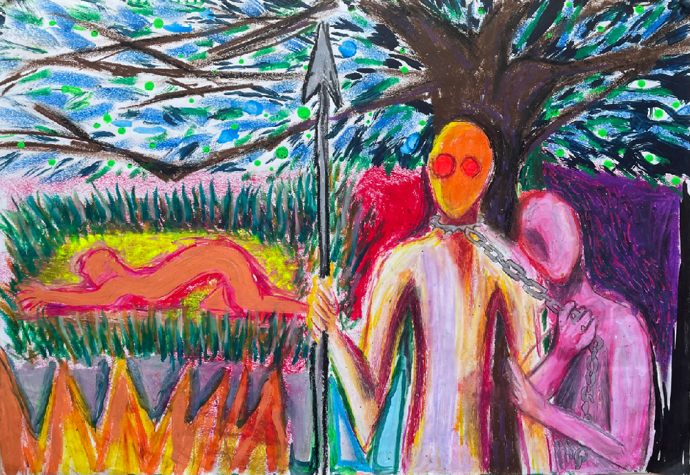 紙・オイルパステル・アクリル