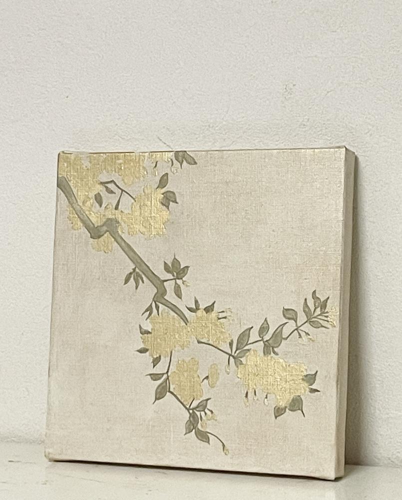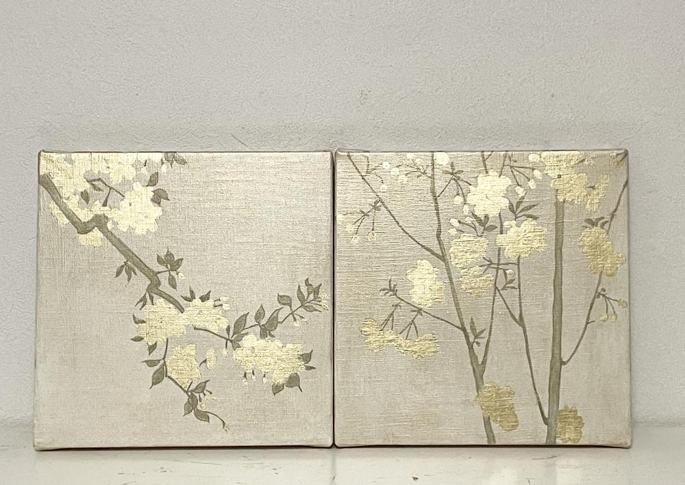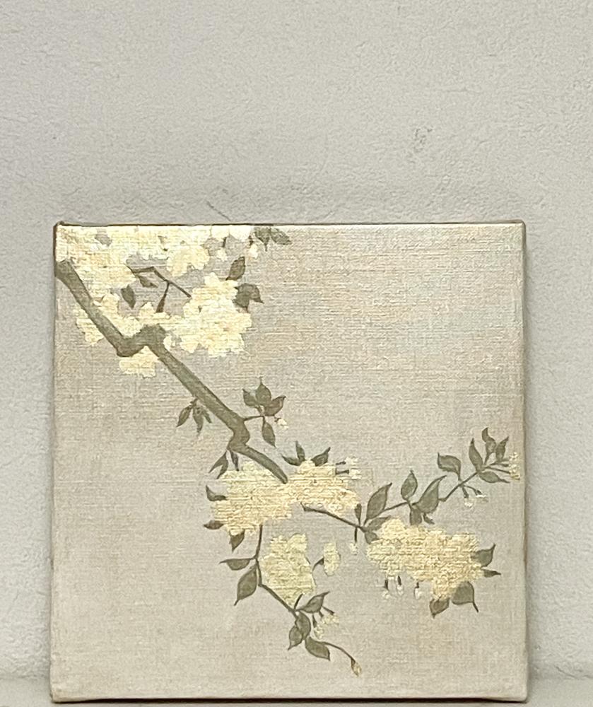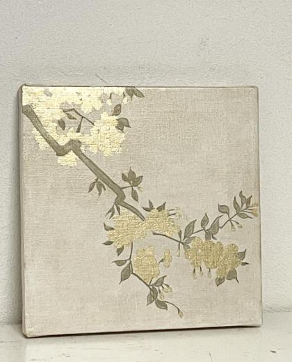 キャンバスに箔と油彩で桜の絵を描きました。