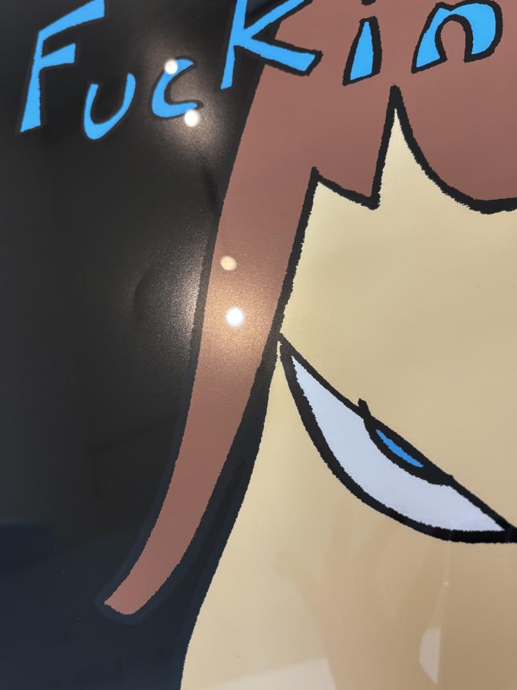 Nara was born and raised in a rural area of Japan and, as a child of working parents, he spent much of his time alone with only his imagination, comic books and family pets as company. The paintings, drawings and sculptures of seemingly innocent, wide-eyed children and dogs that have become his trademark are an attempt to capture this childhood sense of boredom and frustration and recapture the fierce independence natural to children. His paintings and drawings have a childlike simplicity that is reminiscent of traditional book illustration, but the works also have a restlessness and tension that is influenced, in part, by Nara’s love of punk rock, and is reinforced with such titles as The Girl with the Knife in Her Side (1991), Silent Violence (1998), Neurotic to the Bone (1999) and There is Nothing (2000).
