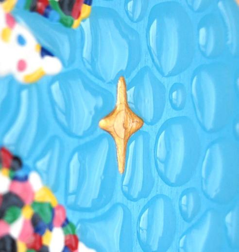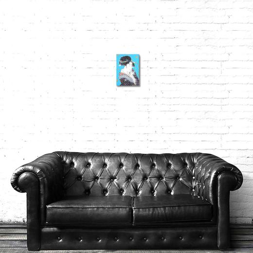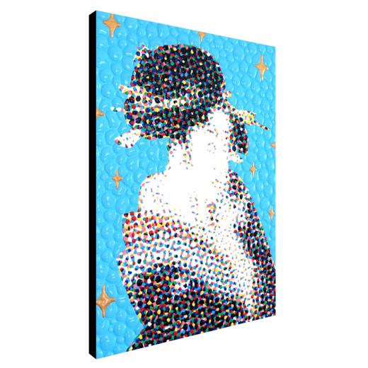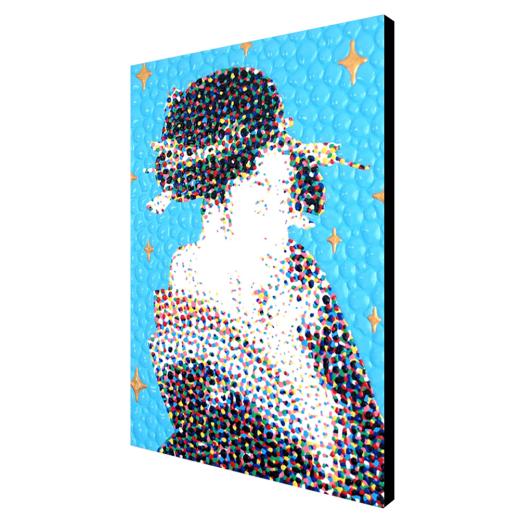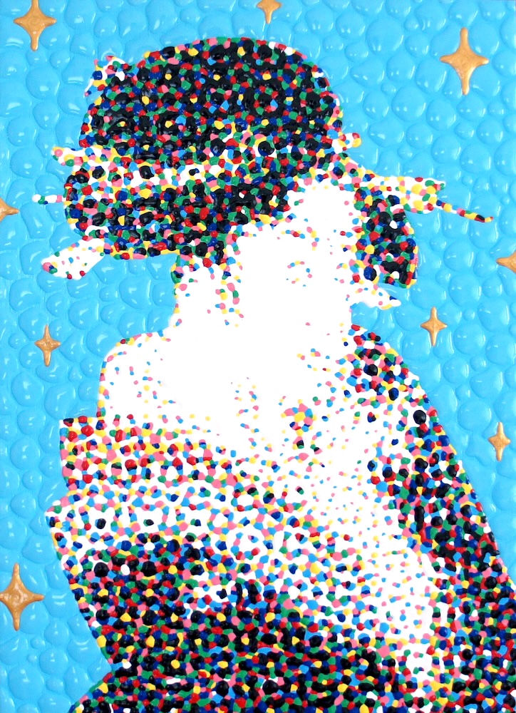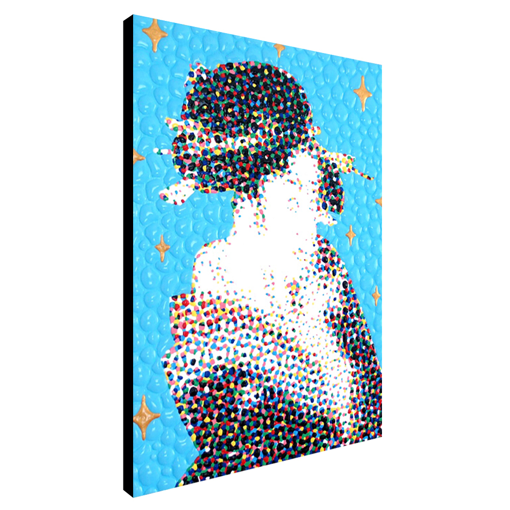 This is not a coincidence. At first, I digitally disassemble the colors of what I draw. Then, I paint every dot of the colors by hand. It would be the gimmick that makes the clusters of irregular colors look like a blurred illusion.