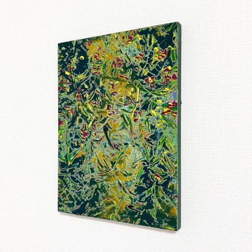 絵の具を幾重にも塗り重ねた後に表面を削る「研ぎ出し」の技法を用いることで、一見穏健に見える絵画の中にうっすらとした不協和音(居心地の悪さ)を生み出しながら、抽象と具象を往来するような作品制作を行う。