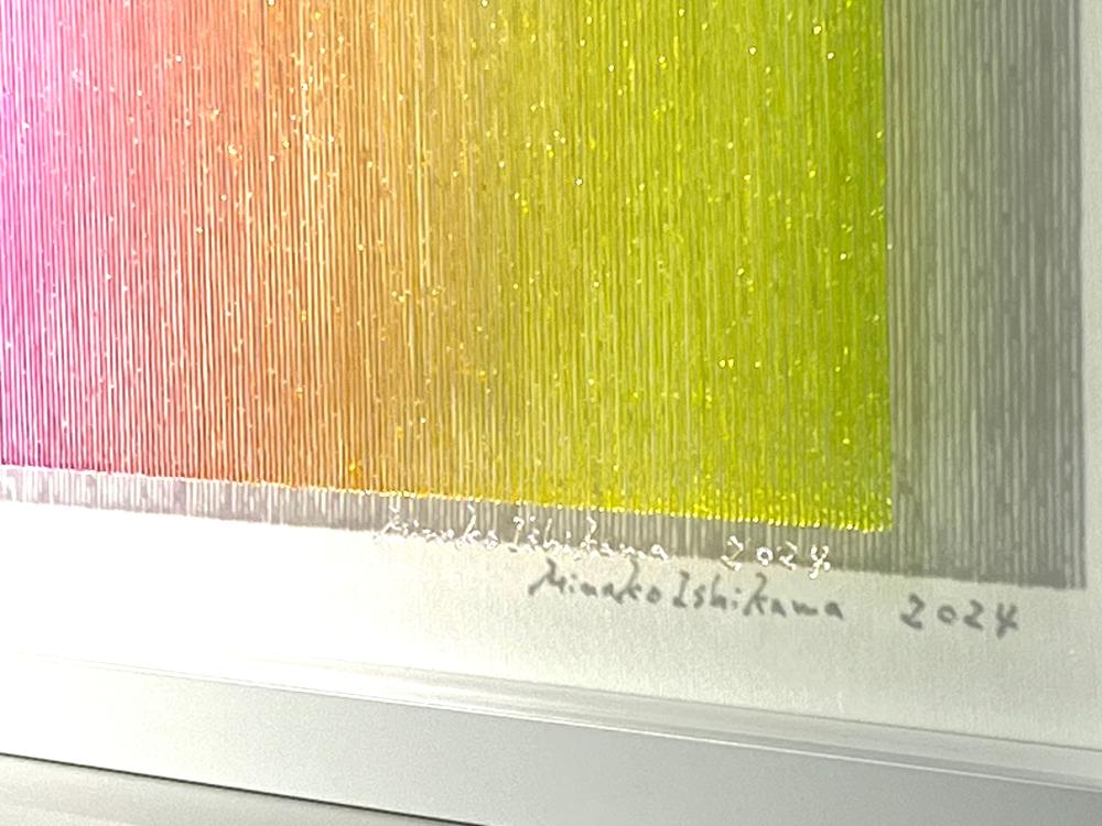 Artists who can draw beautiful gradations are hard to find in this world, right? The true beauty of Minako Ishikawa's work is that the lines are drawn with a single thin acrylic stroke, which is arranged among thousands while subtly changing the color scheme. It is not unusual for her to continue drawing a thin line with the same thickness in a straight line without it thickening left and right.It is surely what God makes. If you think that she paints her work with the colors of the rainbow on a transparent acrylic board, she will change it freely, like drawing with blue on a white canvas, and will attract viewers with her gradations. According to Ishikawa, this work is a work that extracts the "light" that fills the air. In addition, Minako Ishikawa's works feel crafty, beautiful and refreshing without being disturbing, giving us a feeling of openness that you will never get bored of even if you look at it many times. It seems that she has been able to earn high praise on international stage by holding exhibitions in Taiwan several times since two years ago. Despite being time consuming work, her work is highly popular because it is still being sold at a relatively affordable price, so it is advisable to purchase it now. She is one of the artists gathering attention who will grow even more in the future.