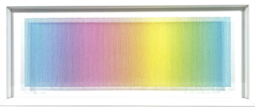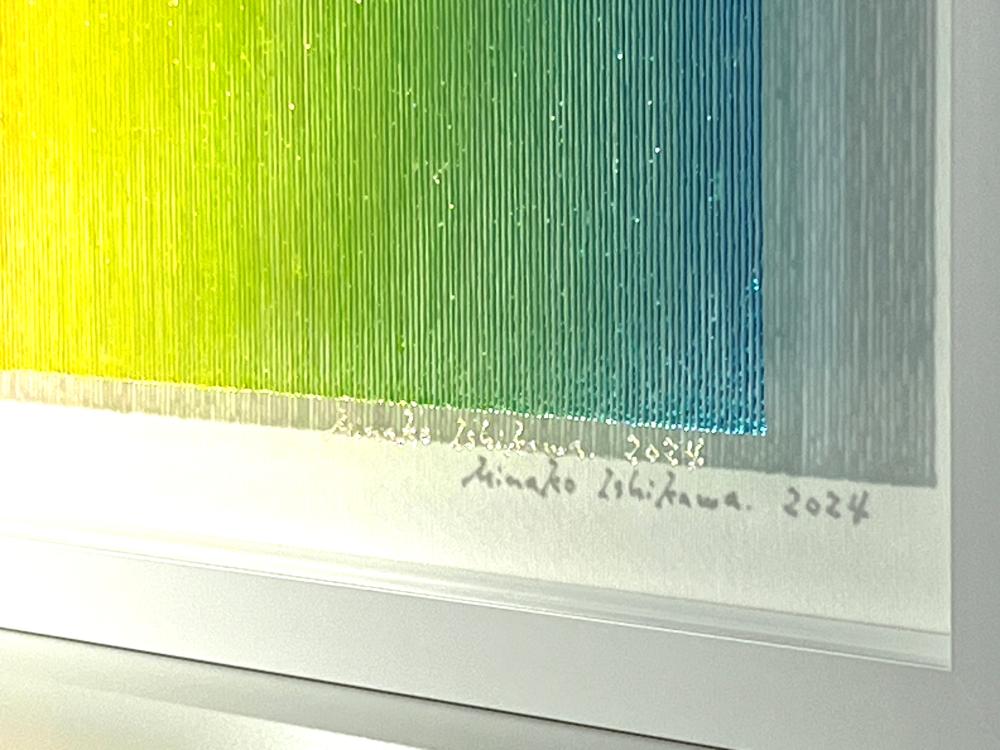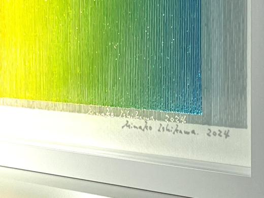 The true beauty of Minako Ishikawa's work is that the lines are drawn with a single thin acrylic stroke, which is arranged among thousands while subtly changing the color scheme.