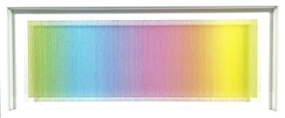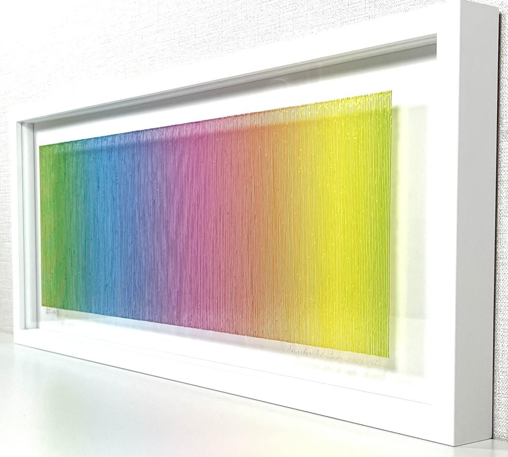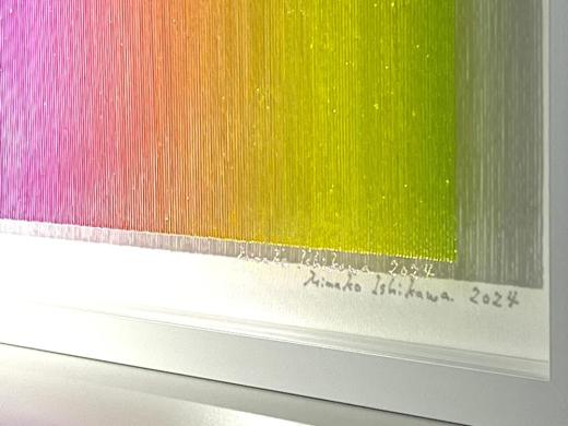 The true beauty of Minako Ishikawa's work is that the lines are drawn with a single thin acrylic stroke, which is arranged among thousands while subtly changing the color scheme.