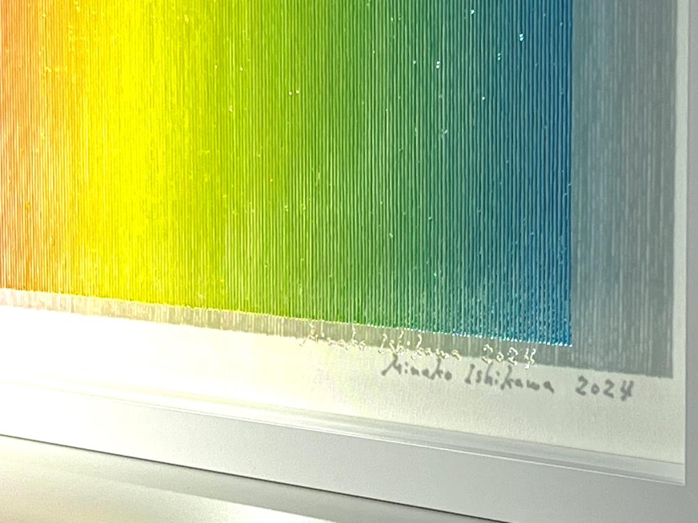 Artists who can draw beautiful gradations are hard to find in this world, right? The true beauty of Minako Ishikawa's work is that the lines are drawn with a single thin acrylic stroke, which is arranged among thousands while subtly changing the color scheme. It is not unusual for her to continue drawing a thin line with the same thickness in a straight line without it thickening left and right.It is surely what God makes. If you think that she paints her work with the colors of the rainbow on a transparent acrylic board, she will change it freely, like drawing with blue on a white canvas, and will attract viewers with her gradations. According to Ishikawa, this work is a work that extracts the "light" that fills the air. In addition, Minako Ishikawa's works feel crafty, beautiful and refreshing without being disturbing, giving us a feeling of openness that you will never get bored of even if you look at it many times. It seems that she has been able to earn high praise on international stage by holding exhibitions in Taiwan several times since two years ago. Despite being time consuming work, her work is highly popular because it is still being sold at a relatively affordable price, so it is advisable to purchase it now. She is one of the artists gathering attention who will grow even more in the future.
