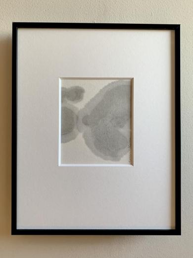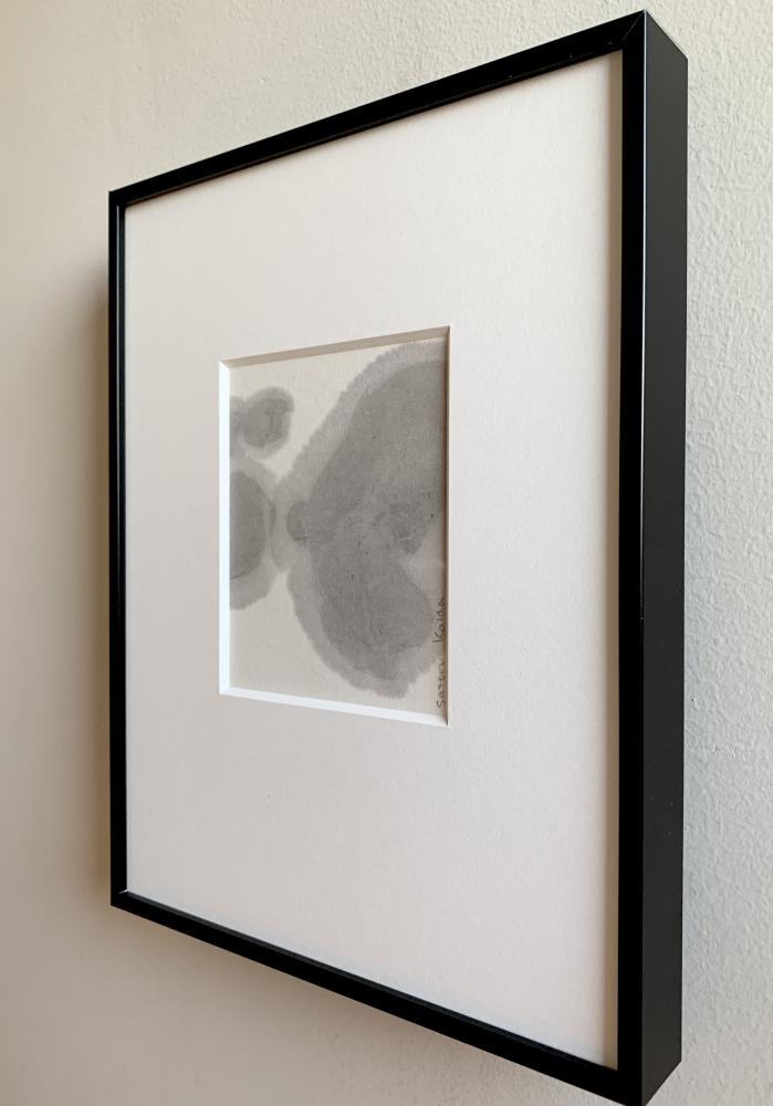 書道の美と技法を現代アートのなかへ新鮮な角度で吹き込む活動をしている、開田氏。墨汁と紙が引き起こす偶然性を援用しながら自らのイマジネーションを、作為と無作為のフュージョンという創造に結びつける、そんなゾクゾクする新しい「書」の魅力を盛んに発信しており、これまで「書」のジャンルに馴染みのなかった人々からも注目を集めています。 本作は、彼女の「Still...」シリーズからの一作です。言葉や文字以前の感情「LOVE」をモールス信号に置き換え記号化、それを淡墨で描いたうえでトリミングしています。