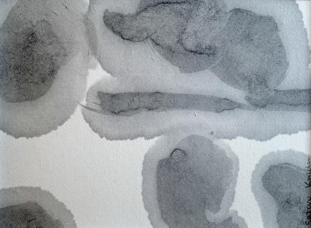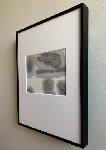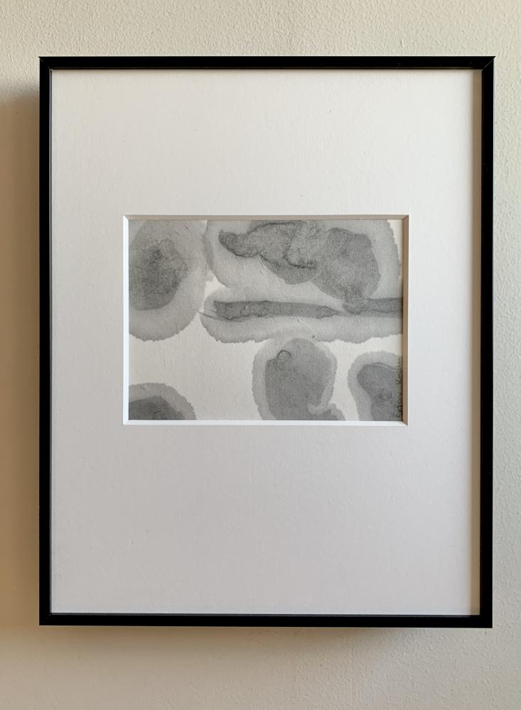書道の美と技法を現代アートのなかへ新鮮な角度で吹き込む活動をしている、開田氏。墨汁と紙が引き起こす偶然性を援用しながら自らのイマジネーションを、作為と無作為のフュージョンという創造に結びつける、そんなゾクゾクする新しい「書」の魅力を盛んに発信しており、これまで「書」のジャンルに馴染みのなかった人々からも注目を集めています。 本作は、彼女の「Still...」シリーズからの一作です。言葉や文字以前の感情「LOVE」をモールス信号に置き換え記号化、それを淡墨で描いたうえでトリミングしています。
