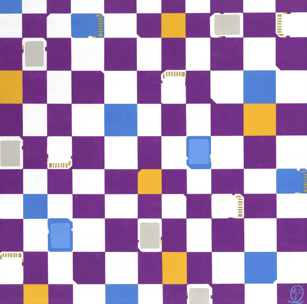 SDカードを市松紋様に見立てて描いた作品です。 ※裏面に吊り下げ用の金具と紐が付いています。