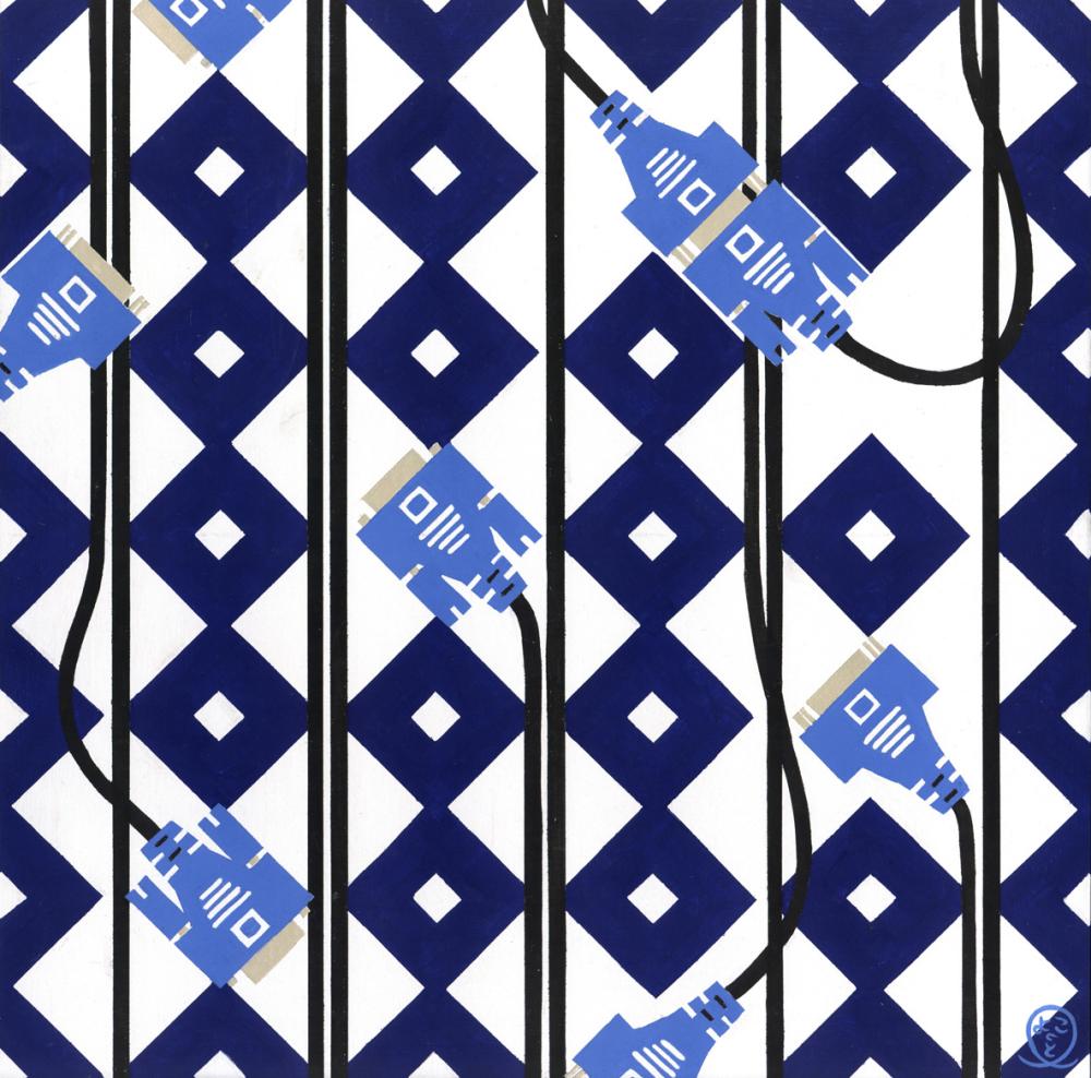 VGAケーブルを釘抜繋紋様に見立てて描いた作品です。 ※裏面に吊り下げ用の金具と紐が付いています。