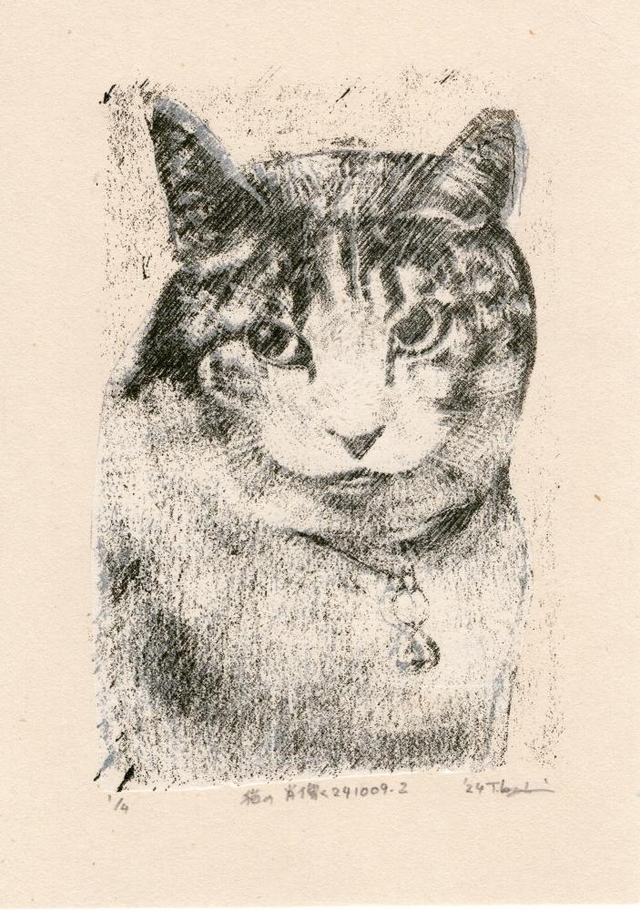 本作は、彼女の近作から自薦の一枚。謄写版の味わいが詰まった小作品でエディション4枚のみの希少品です。自ら版となる原紙のロウ引きから行って制作したものです。