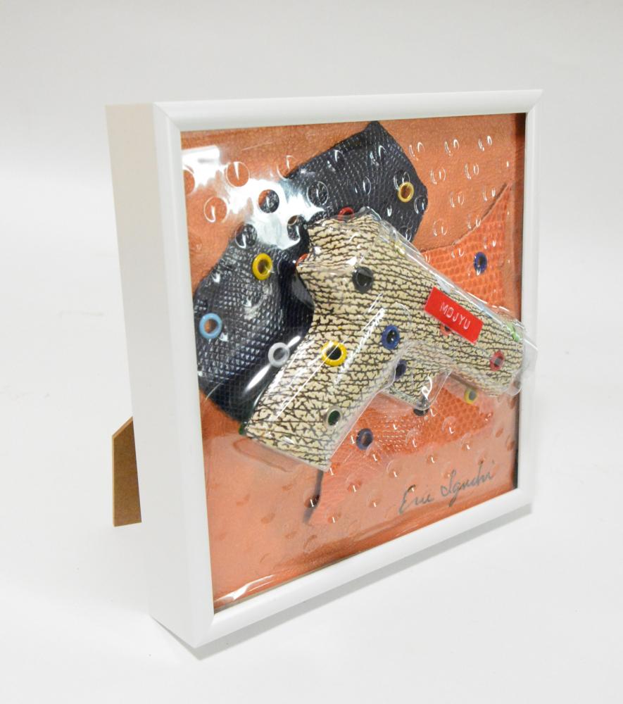 私は人間が持つ普段は内に秘めている本能やふとした時に理性では抑えきれない感情的な部分,抗うことができない自然の摂理を「獣」と呼び、作品化しています。銃と獣という読み方が同じものを掛け合わせて制作した作品です。