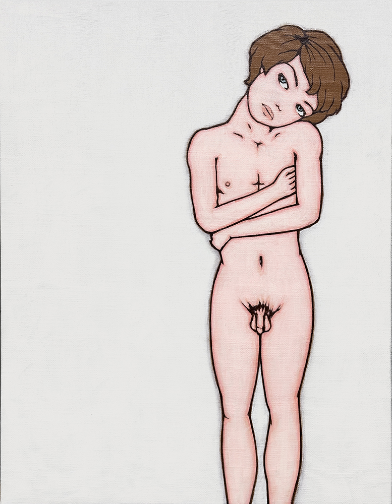 アンタカンタは、90年代に現代美術のアーティストとして活動していましたが、まったく食べていけなくなってしまい、どん底から起業しました。会社を成長させていく中で経験した 思考が現実になっていく世界。その世界を作品のテーマとして、2015年からアート活動を再開しました。モチーフとして登場する4.5頭身の女の子は、マリアカンナと言う名前で、教科書の隅に描き続けてきた空想上のモデルです。幼く小さく弱いマリアカンナとポポが、固定概念を振り払い、思考が現実になる世界を旅する姿を絵画作品にしています。