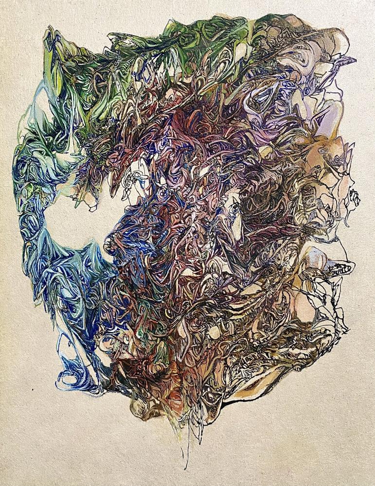 Panel/Japanese paper, ink, watercolors
