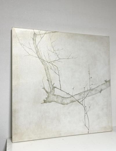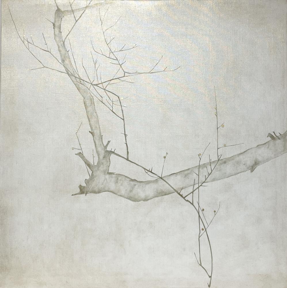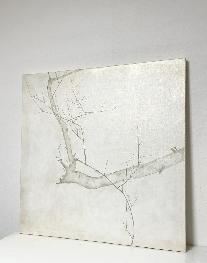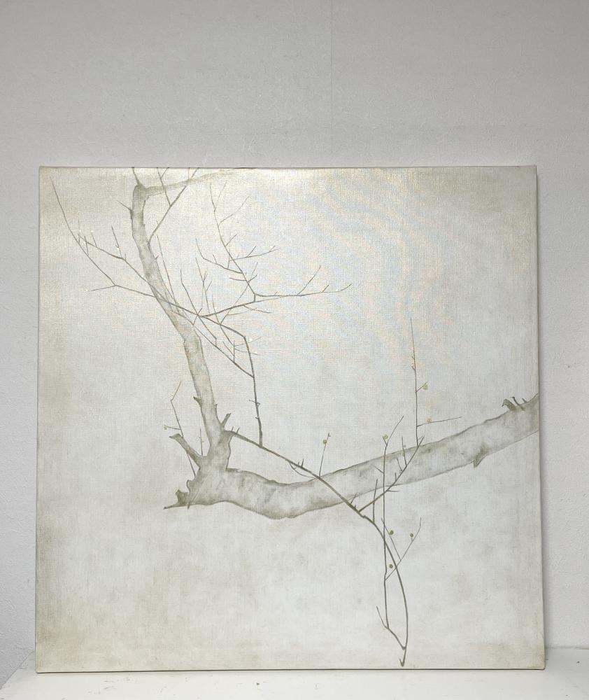 キャンバスに箔と油彩で梅の絵を描きました。