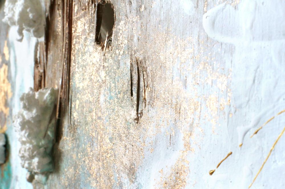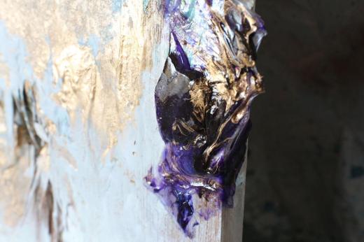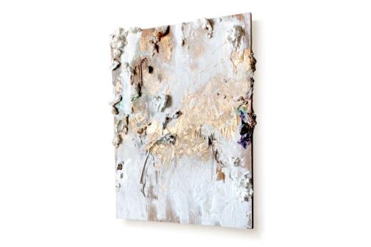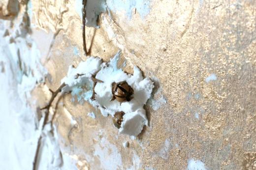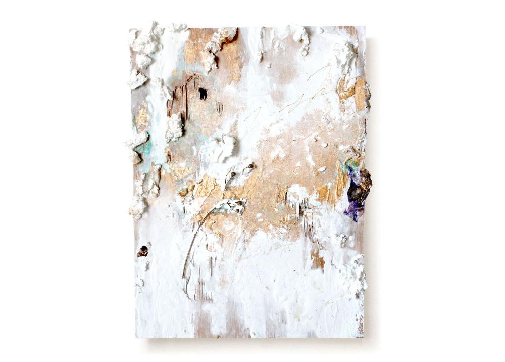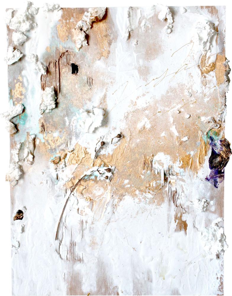アクリル絵の具、メッキ調顔料、板キャンバス、あの時の花