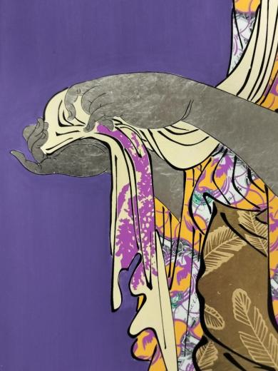 He expresses the process of creation of the world mainly by using banknotes, currency system, Ukiyoe and classical art of the world as materials.