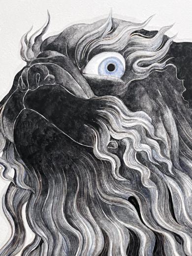古代、信仰の為に日本に呼ばれ、獅子から犬へと身を転じた獅子狛をモチーフとした人気シリーズ「獅子狛」により、2014年に住吉大社(大阪)より御祓講獅子意匠預を委嘱され、獅子舞頭意匠や祭事に関わる物のアートディレクションを行うなどアート業界以外からもその作品力が注目を集めた。