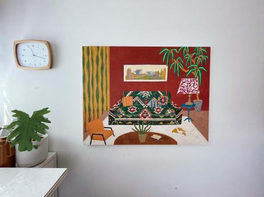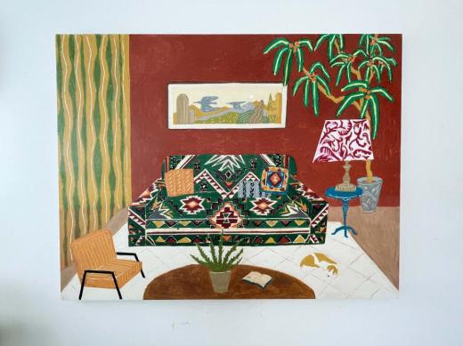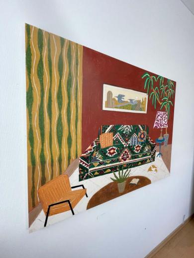穏やかな空間を表現することをテーマに、家族との時間を通じて物質的価値を超えた本当に大切なものを問い直し、その思索を絵画として具現化する。大切な人との空間や訪れた場所の記憶と空想を織り交ぜ、一枚の絵に温かさと静けさを込める。鮮やかでありながら柔らかな質感を追求し、独自の色彩で穏やかな空間を創り出す。彼女の作品は視覚的だけでなく感覚的にも安らぎを与えるものとなっている。