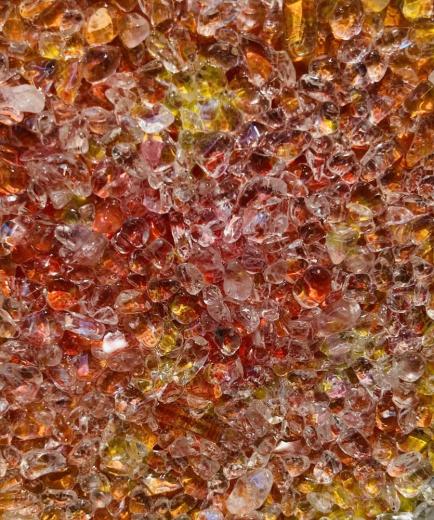自然界の生命力を転送してくれるような、サトチヒロ氏の絵画世界。それを極めて独特なものにしているのは、絵具に加え「水晶」を画材として用いることで生まれるダイナミックな絵肌とその輝きです。