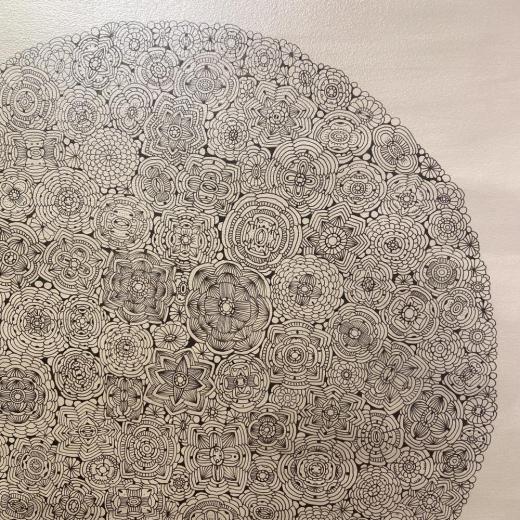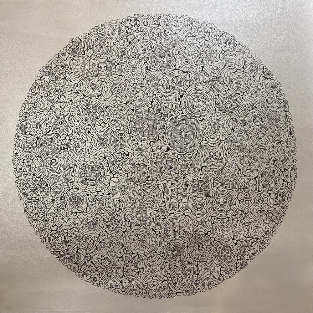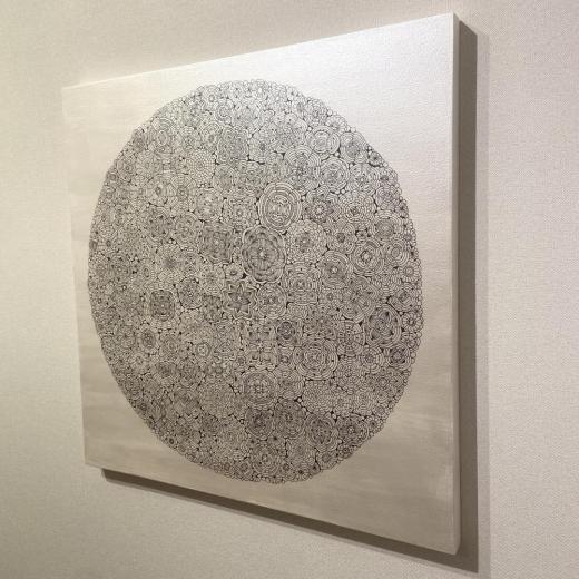 黒い顔料インクがペンで運ばれて姿を表す線のひとつずつが、まるで細胞のように画面のなかで形をなし、うごめき、生命を吹き込まれたように存在を主張して見るものを圧倒する板谷うた氏のアートワーク。