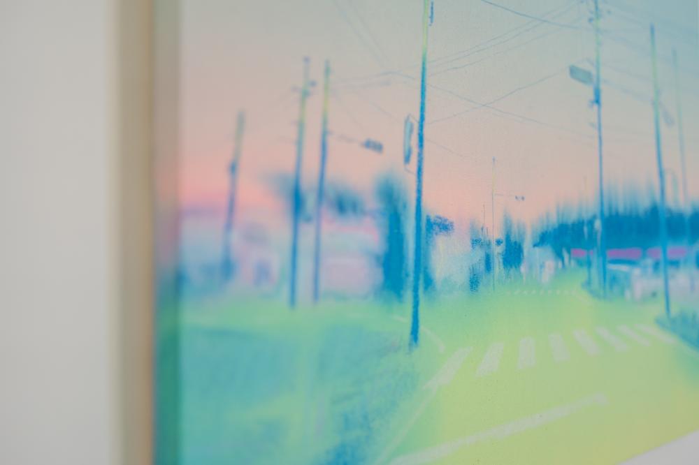 そのようなアプローチの中でも、三塚の作品は決して暗く閉ざされたものではない。そこには淡く重なり合う色彩の奥行きがあり、静謐でありながらどこか神聖さを湛えた風景が広がっている。それは悲しみの中からも希望を手繰り寄せようとする彼の繊細な意志によるものだろう。