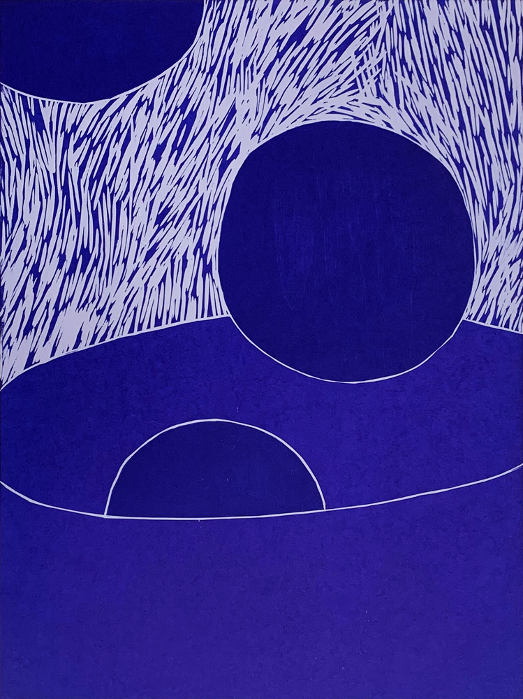 Oil-based woodblock on ganpi paper, 3 plates 3 colors